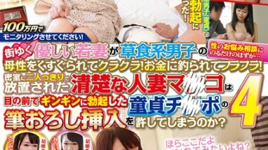人妻・主婦 【s586ammsd00258】100万円でモニタリングさせてください!街ゆく優しい若妻が草食系男子の性のお悩み相談にのるだけのはずが、母性をくすぐられてクラクラ!お金に釣られてフラフラ! 4 完全版